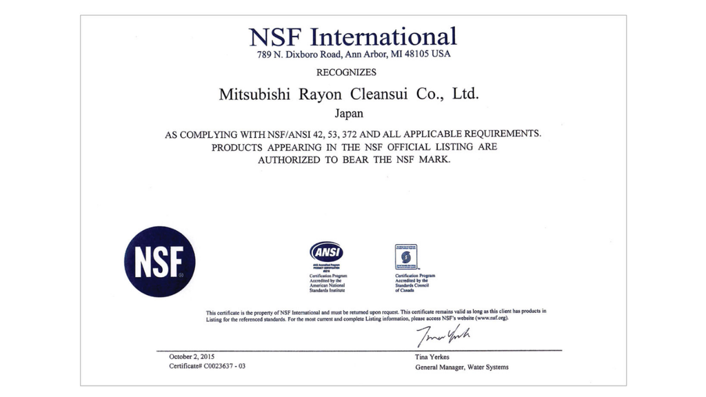 Chứng nhận NSF và tem chứng nhận quốc tế của máy lọc nước Cleansui