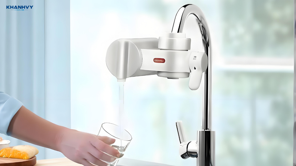 Máy lọc nước gắn vòi: tiện lợi, lắp trực tiếp tại vòi nước, phù hợp căn hộ nhỏ.