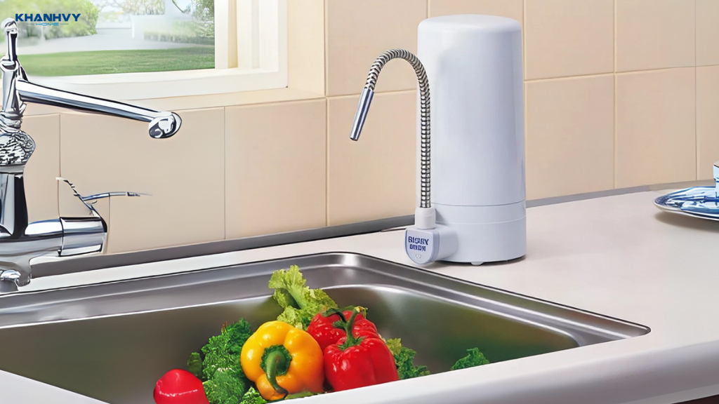 Máy lọc nước trên bồn rửa: hiện đại, tiết kiệm không gian, cung cấp nước uống trực tiếp.