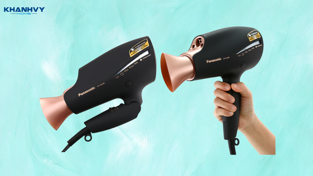 - Máy sấy tóc Panasonic EH-NA98-K64 có thiết kế sang trọng, hiện đại, nhỏ gọn: trọng lượng chỉ 902 g, tay cầm gấp gọn tiện mang theo khi du lịch hoặc công tác.