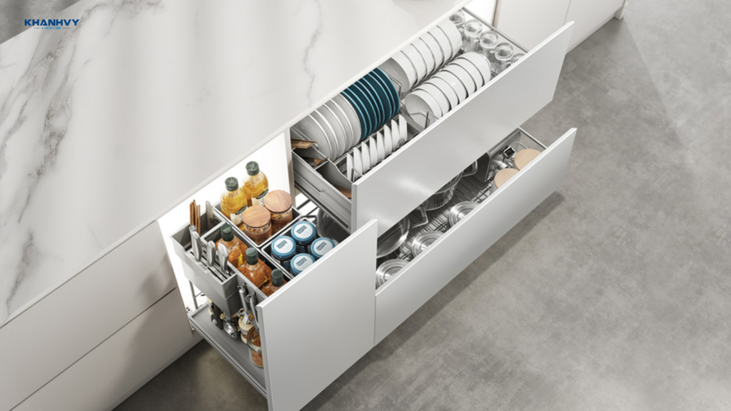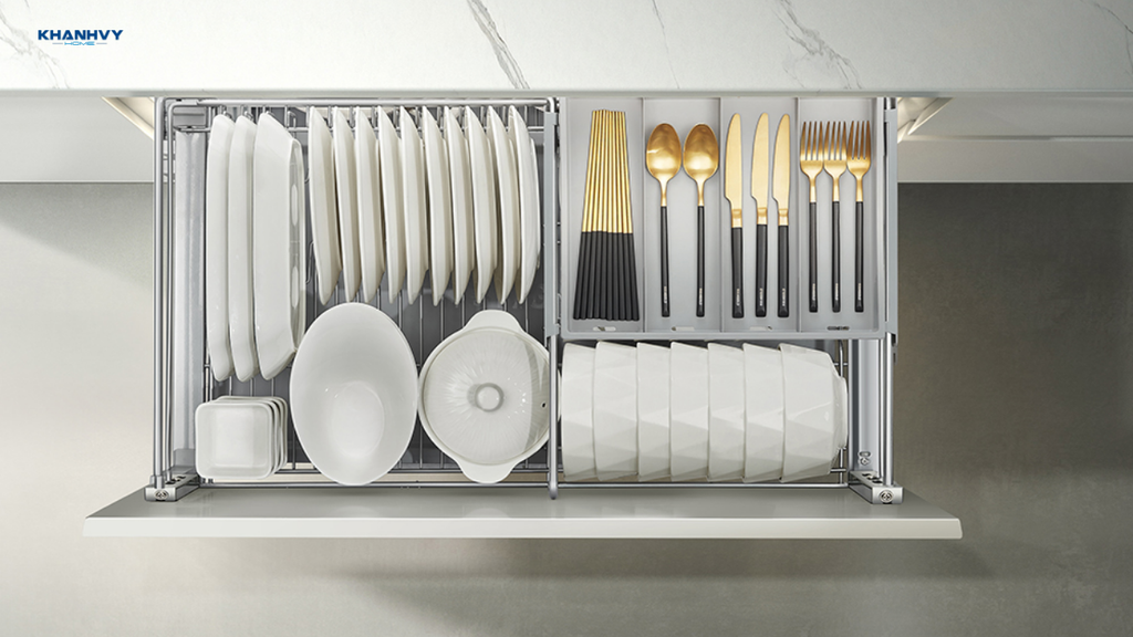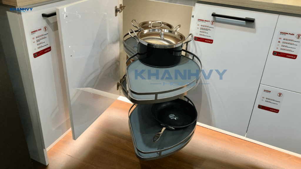 Phụ kiện tủ bếp ngày nay không chỉ dừng lại ở việc hỗ trợ cất giữ đồ dùng, mà còn trở thành điểm nhấn mang lại sự tiện nghi và hiện đại cho căn bếp. Trong đó, kệ chén dĩa, xoong nồi là những sản phẩm không thể thiếu, giúp sắp xếp gọn gàng, tiết kiệm diện tích, tăng tính thẩm mỹ cho căn bếp. Tại Khánh Vy Home, chúng tôi phân phối đa dạng các mẫu kệ đến từ các thương hiệu uy tín như Hafele, Maadela, Eurogold,... mang đến nhiều lựa chọn phù hợp với nhu cầu và phong cách của nhiều gia đình.