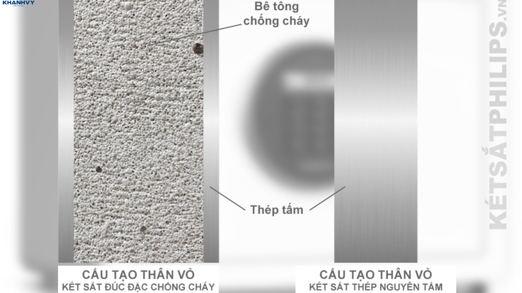 Cấu tạo két sắt được phủ một lớp chống cháy lớp vỏ ngoài