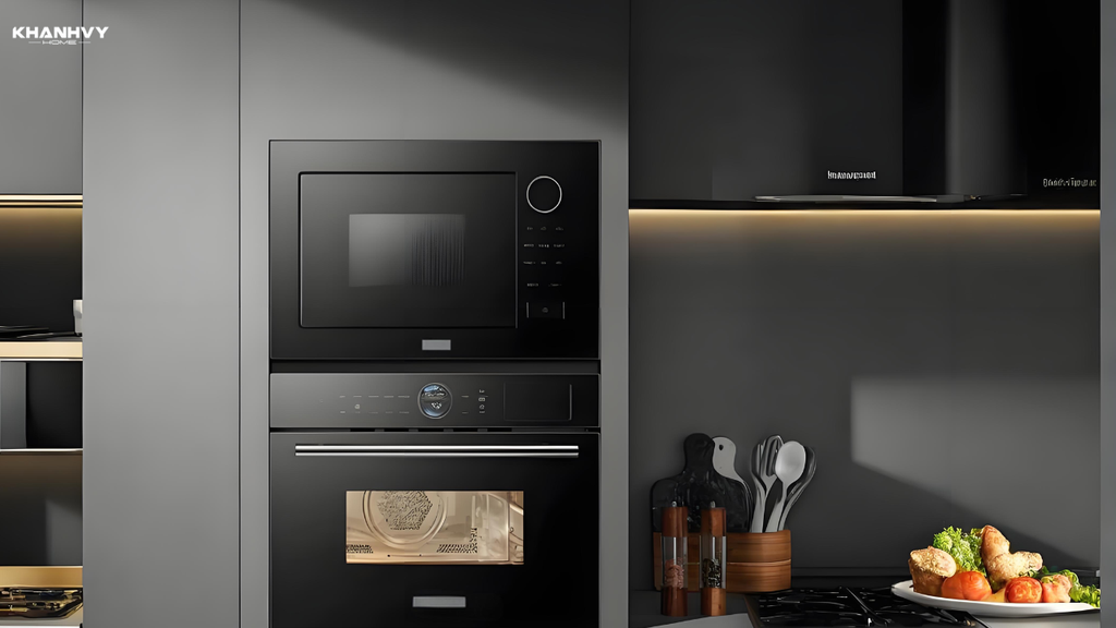 Lò vi sóng âm tủ: được lắp đặt gọn gàng, đồng bộ với nội thất bếp. Ưu điểm là thẩm mỹ cao, tiết kiệm diện tích, mang lại không gian bếp sang trọng.