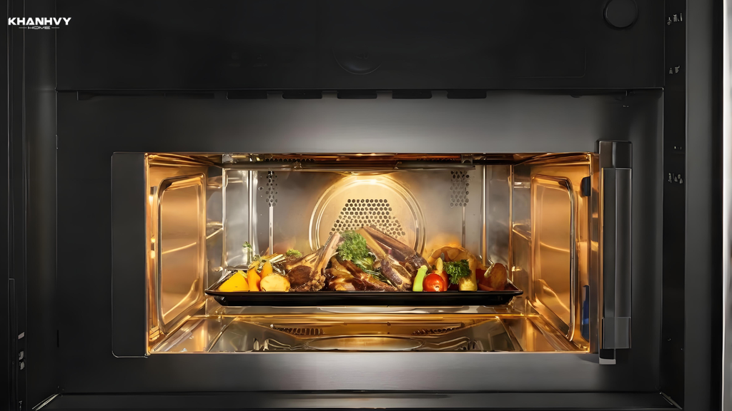 Chức năng | Vi sóng, rã đông | Kết hợp nướng, nướng âm tủ, nấu tự động, chế độ đa món |