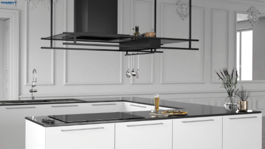 Máy hút mùi đảo còn gọi là máy hút mùi độc lập, thiết kế treo thả độc đáo từ trần bếp xuống, tạo điểm nhấn sang trọng cho không gian. Máy thường có công suất lớn từ 600 đến 1400 m³/h, phù hợp với các bếp rộng, bếp nhiều vùng nấu. Ưu điểm của máy hút mùi đảo là vị trí lắp đặt linh hoạt, dễ dàng cảm nhận và hút mùi từ nhiều phía. Tuy nhiên, giá thành thường cao hơn và máy chiếm diện tích khá lớn, không phù hợp bếp nhỏ.