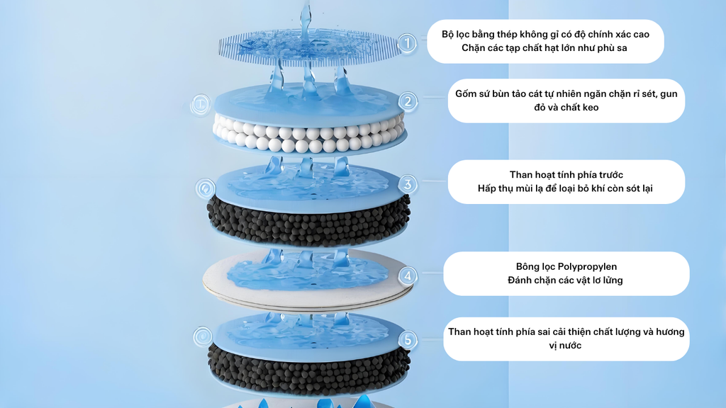 Lọc 5 cấp độ - giữ lại các khoáng chất ban đầu trong nước thô