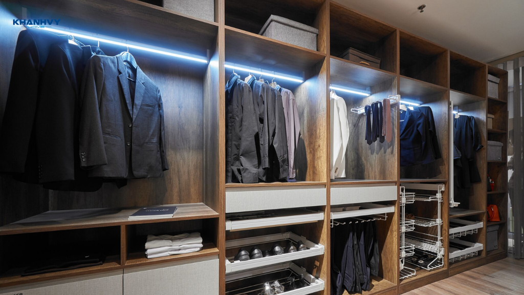 Trong thiết kế nội thất hiện đại, tủ quần áo không chỉ là nơi lưu trữ đơn thuần mà còn thể hiện phong cách sống và gu thời trang, gu thẩm mỹ của gia chủ. Từ đó, các phụ kiện tủ quần áo càng được nhiều người quan tâm hơn. Một chiếc tủ quần áo tiện nghi không thể thiếu những phụ kiện thông minh như giá treo quần, ngăn kéo đa năng, hệ thống đèn LED, khay để phụ kiện hay cơ cấu tay nâng… Những chi tiết tưởng như nhỏ bé nhưng lại đóng một vai trò vô cùng quan trọng, giúp không gian trở nên gọn gàng và tiện lợi hơn nhiều trong sinh hoạt hằng ngày. Vậy hãy cùng Khánh Vy Home tìm hiểu phụ kiện tủ quần áo gồm những gì và nên lựa chọn như thế nào để sản phẩm vừa đẹp vừa bền và vừa tối ưu được nhiều công năng nhé!