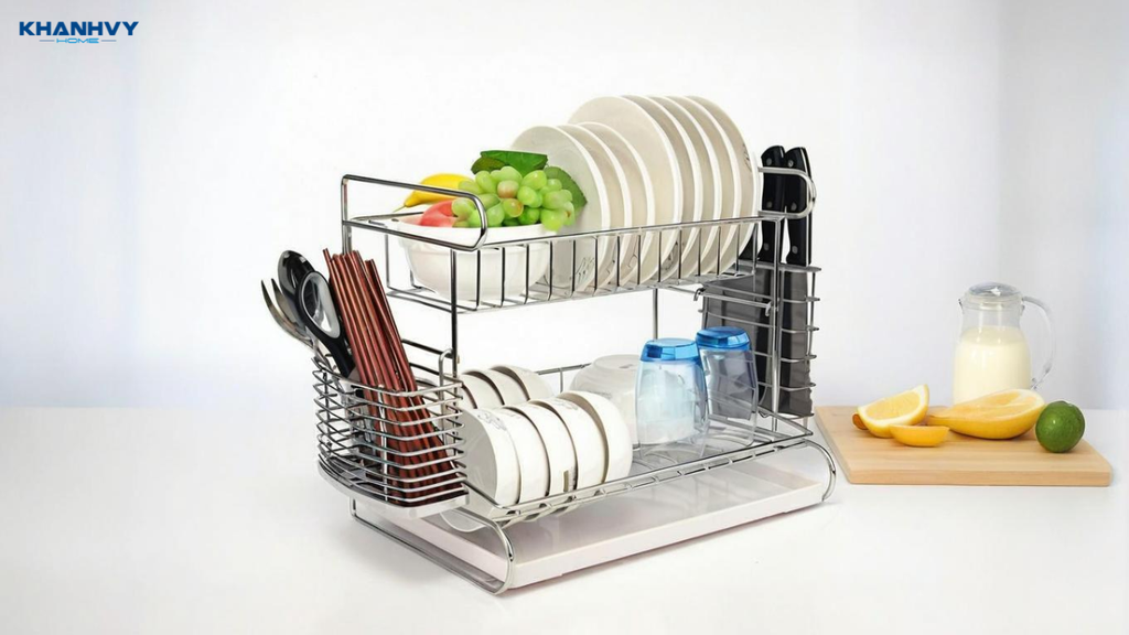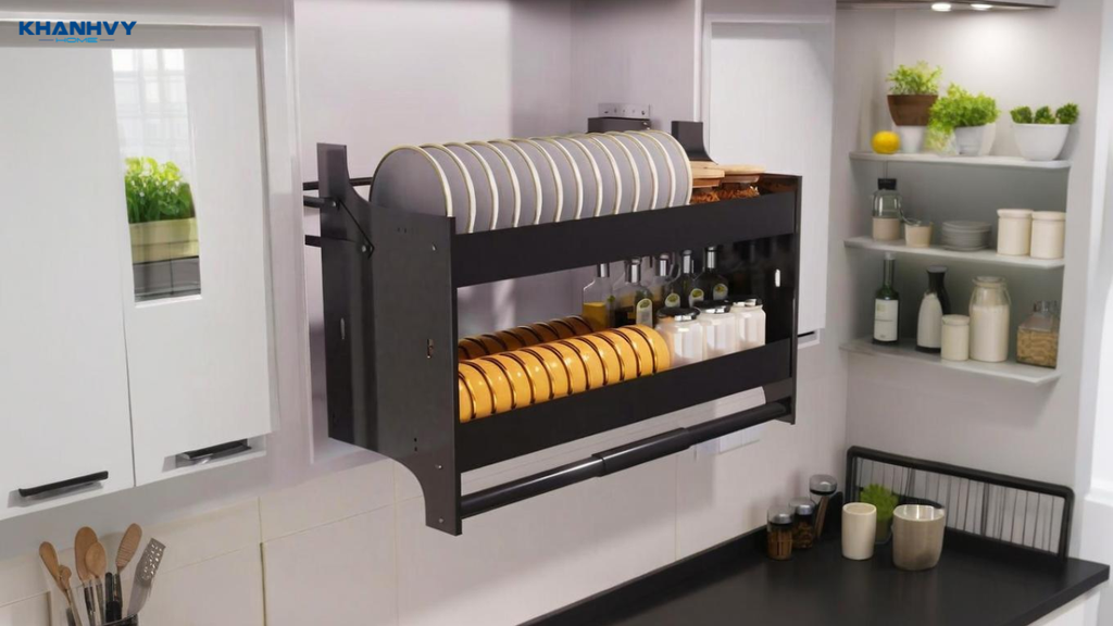 Kệ chén tủ trên giúp sắp xếp chén, bát gọn gàng, tiết kiệm không gian tủ và dễ dàng lấy khi nấu nướng. Sản phẩm thường làm từ inox chống rỉ hoặc nhựa cao cấp, có ray trượt êm và khả năng chịu lực tốt. Một số mẫu kệ còn có chức năng úp khô tự nhiên, giúp bát đĩa luôn sạch sẽ và khô ráo.