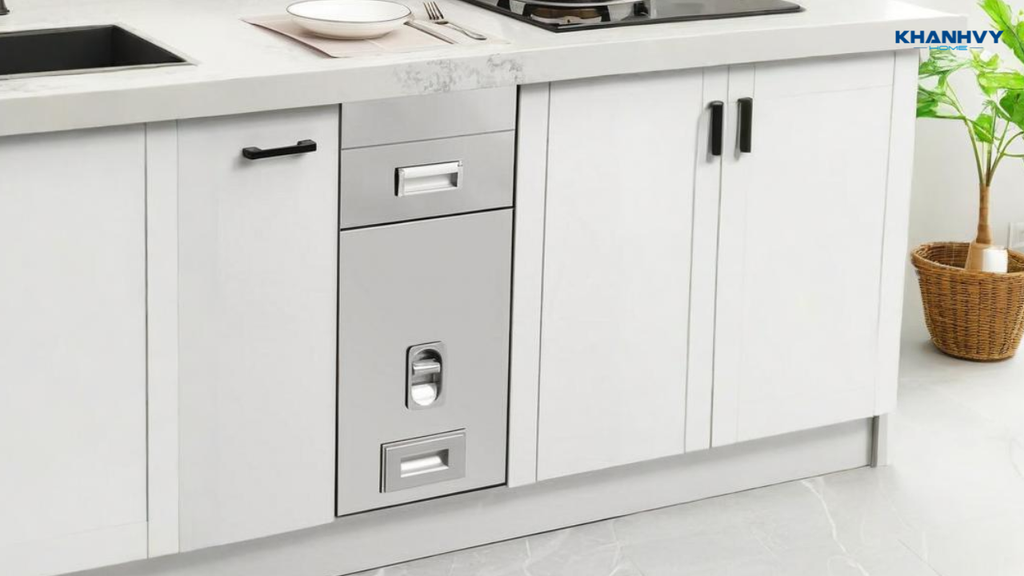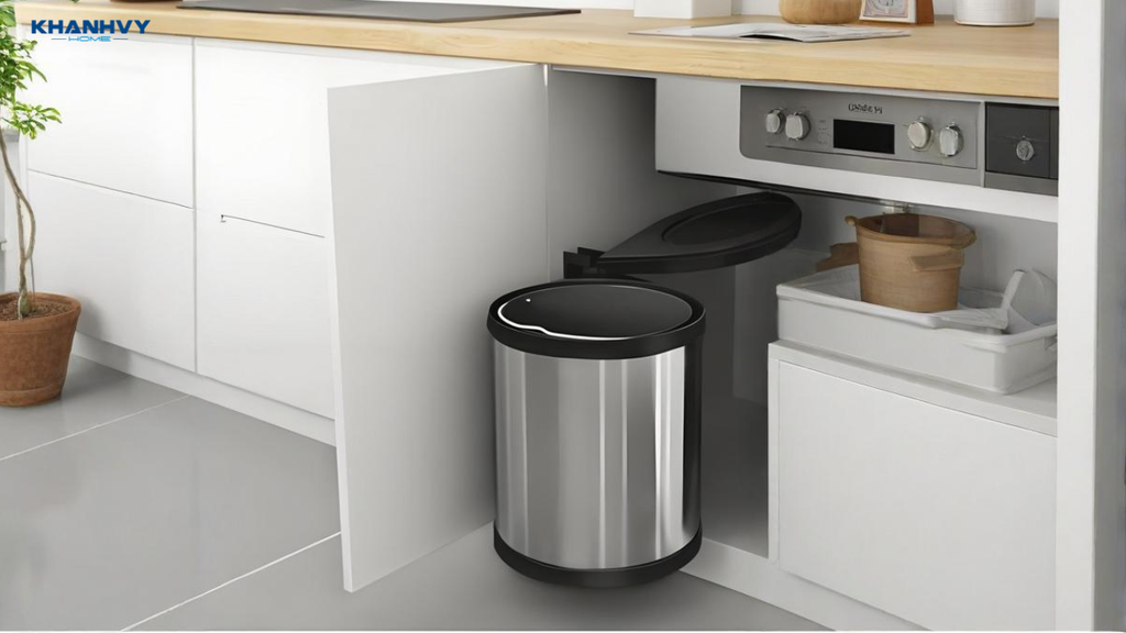 Thùng rác âm tủ là giải pháp tối ưu cho căn bếp hiện đại. Thiết kế kéo ra, đẩy vào, giúp tiết kiệm diện tích sàn, hạn chế mùi hôi và phân loại rác hữu cơ, vô cơ hiệu quả. Một số mẫu còn có nắp tự đóng êm ái, vừa vệ sinh vừa đảm bảo thẩm mỹ.