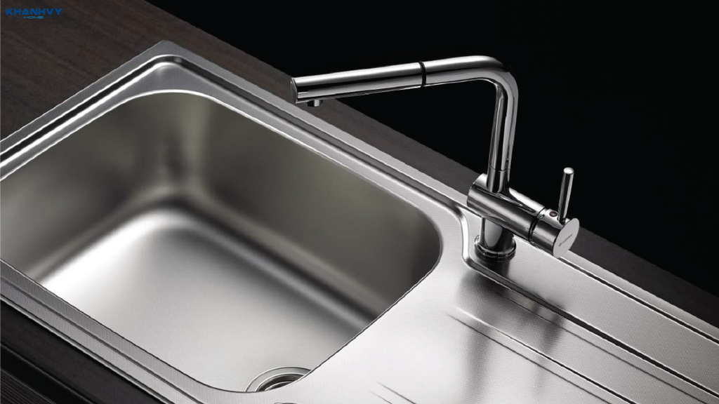 • Chậu rửa 1 hố: Thiết kế gọn gàng, phù hợp với những căn bếp nhỏ hoặc gia đình ít người. Chậu 1 hố giúp tiết kiệm diện tích, dễ vệ sinh và tối ưu không gian làm việc.