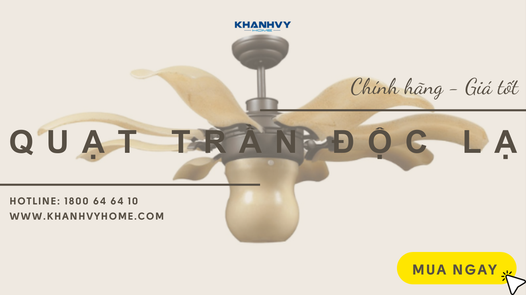 Mua quạt tại những đơn vị uy tín như Khánh Vy Home sẽ đảm bảo bạn nhận được sản phẩm chính hãng, đầy đủ chế độ bảo hành và hỗ trợ sau bán hàng. Khánh Vy Home cung cấp đa dạng mẫu quạt trần độc lạ từ nhiều thương hiệu nổi tiếng, có đội ngũ tư vấn tận tình giúp bạn chọn đúng sản phẩm phù hợp với diện tích, phong cách nội thất và nhu cầu sử dụng. Mua tại các cửa hàng uy tín cũng giúp bạn an tâm về nguồn gốc sản phẩm, chất liệu và chất lượng động cơ.