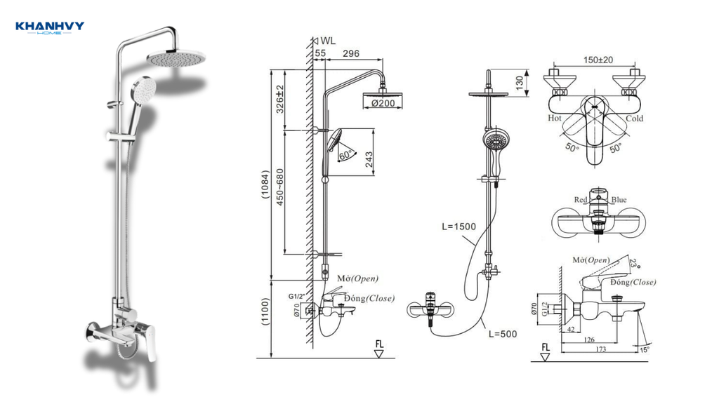 Kích thước và thiết kế | Thiết kế hiện đại, chiều dài thân khoảng 1m, kích thước tiêu chuẩn, phù hợp với mọi không gian. | Thiết kế hiện đại, có khả năng điều chỉnh độ cao của tay sen phù hợp với chiều cao mỗi người |
