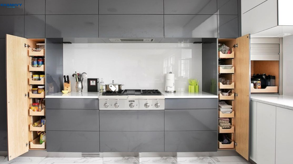Ngoài ra, tủ cánh kéo còn tạo cảm giác hiện đại, gọn gàng cho bếp, đồng thời giảm tình trạng đồ rơi vãi khi mở tủ. Đây là lựa chọn lý tưởng cho những ai ưu tiên sự tiện lợi và tính thẩm mỹ cao.