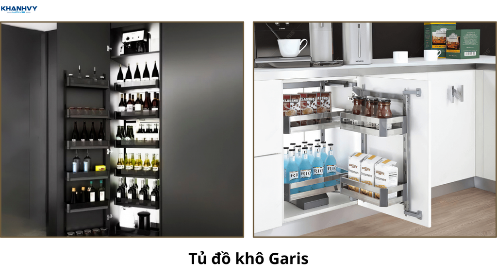 Khám phá các loại tủ đồ khô hiện đại, từ cánh mở đến cánh kéo, với chất liệu bền, chống ẩm và nhiều ngăn tiện lợi. Tại Khánh Vy Home, bạn sẽ tìm thấy sản phẩm chất lượng từ các thương hiệu uy tín như Hafele, Garis, Maadela, Higold, Eurogold, giúp bếp luôn gọn gàng và tiện nghi.