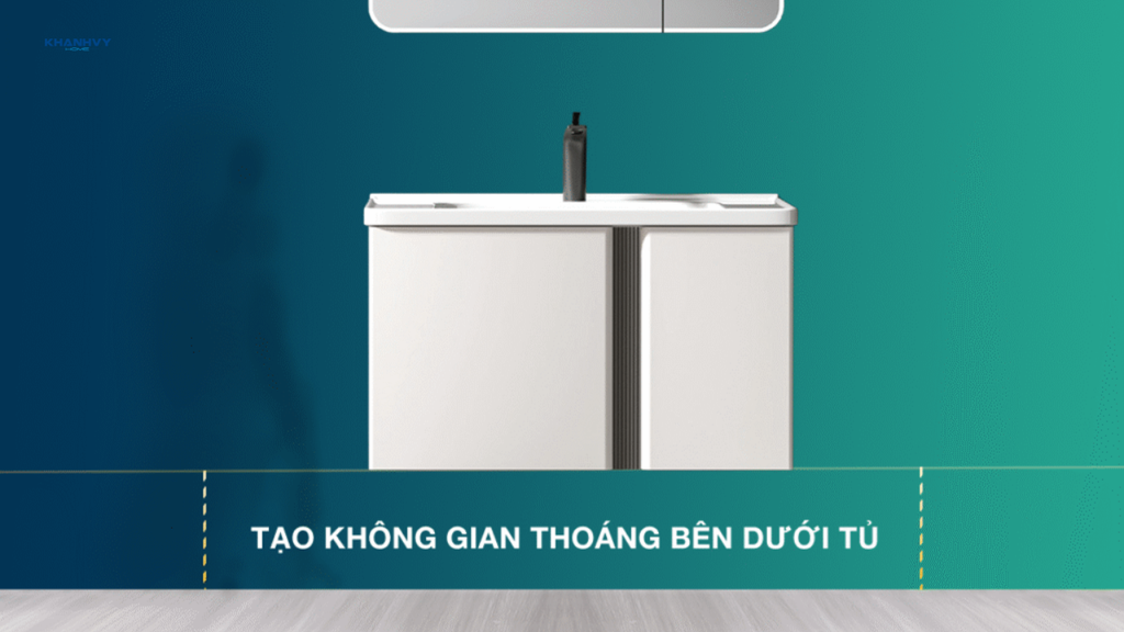 Đối với phòng tắm nhỏ, bạn nên chọn tủ lavabo kích thước W800–W900mm và thiết kế treo tường để tối ưu diện tích. Các mẫu này vẫn đảm bảo công năng, có hệ thống ngăn tủ và kệ tiện dụng để sắp xếp đồ dùng gọn gàng.