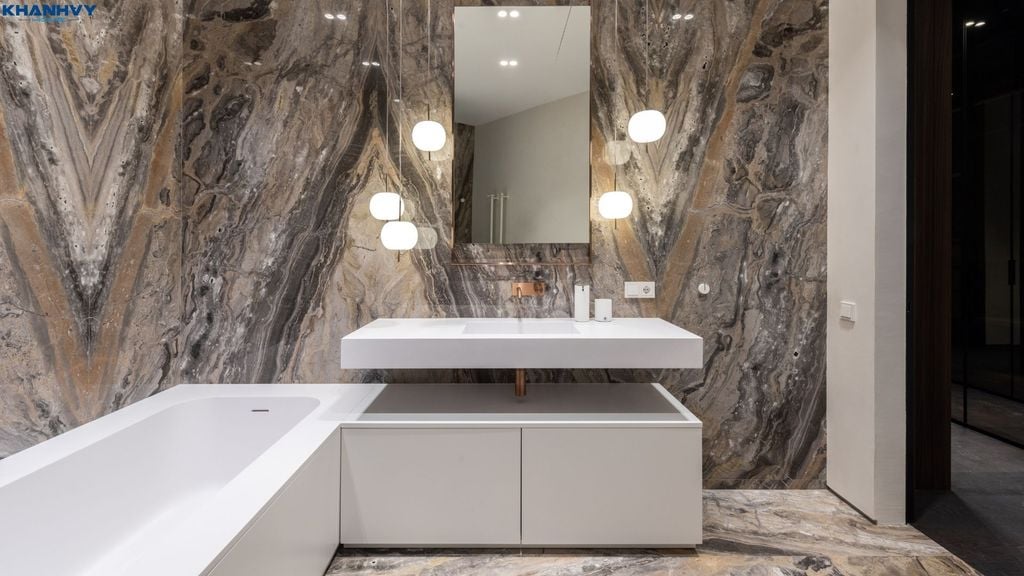 • Đá nhân tạo/đá tự nhiên: Cao cấp, sang trọng, mẫu mã đa dạng, dễ vệ sinh nhưng giá thành cao.