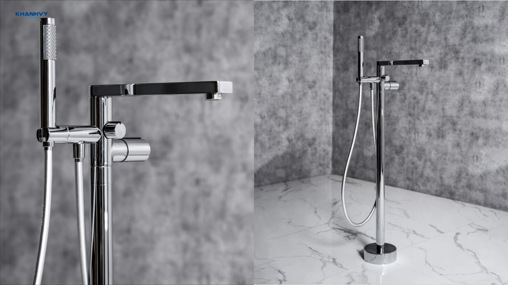 Vòi bồn tắm được chế tác từ đồng thau nguyên khối cao cấp, mang lại độ bền vượt trội và khả năng chống oxy hóa, chống rỉ sét tối đa. Tay sen được làm từ thép không gỉ 304, giúp chống xỉn màu và ăn mòn hiệu quả, đảm bảo giữ được vẻ sáng bóng như mới dù sử dụng lâu dài. Bên trong là hệ thống dây cấp nước chất lượng cao với 2 đường nước nóng lạnh, cho phép người dùng dễ dàng điều chỉnh nhiệt độ phù hợp, mang đến trải nghiệm tiện nghi.