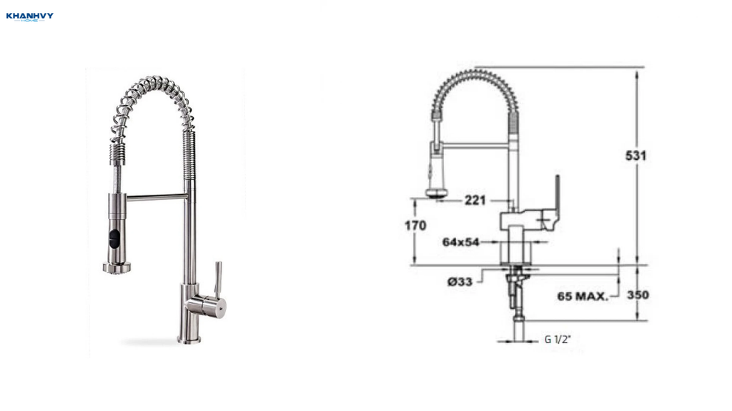 Kích thước vòi rửa phù hợp không gian