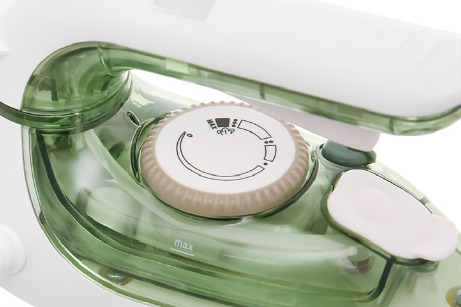 Điều chỉnh công suất bằng núm vặn, có chia mức nhiệt thích hợp cho từng loại vải tổng hợp, tơ lụa, len, cotton, vải lanh
