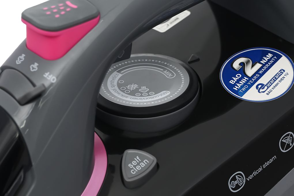 - Tự làm sạch: hệ thống tự làm sạch sẽ giúp lấy đi những cặn rắn từ trong nước bám ở khoang chứa nước và hệ thống dẫn nước hóa hơi, giúp tăng độ bền của bàn ủi.