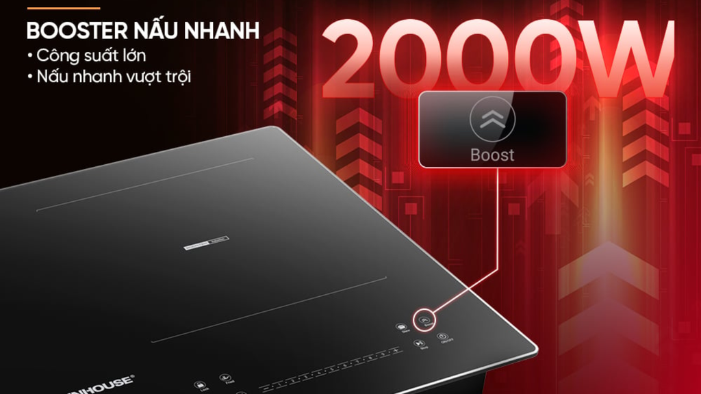 Chức năng Booster cho phép tăng công suất lên mức cao nhất trong thời gian ngắn, giúp nhiệt độ tăng nhanh chóng và nấu nướng được thực hiện một cách hiệu quả. Điều này giúp tiết kiệm thời gian và làm việc nhanh hơn trong bếp.