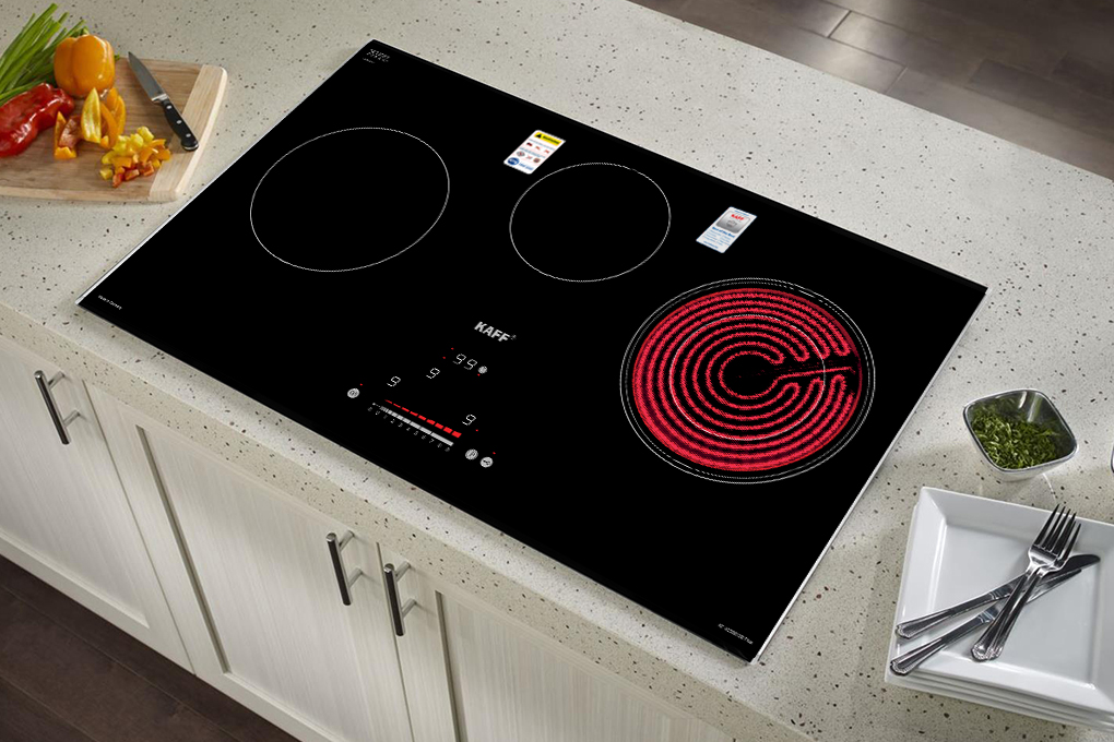 Bếp từ đôi hồng ngoại 3 lò cảm ứng KAFF KF-IC5801SB, Dòng bếp Nhập khẩu nguyên chiếc 100% Germany từ Đức, thuộc dòng bếp điện từ cao cấp của thương hiệu thiết bị nhà bếp nổi tiếng tại Đức KAFF, là sự kết hợp hoàn hảo giữa 2 bên bếp từ (sử dụng các bộ nồi chảo inox từ, tiết kiệm điện và đun nấu nhanh hơn) và 1 bên bếp điện hồng ngoại (không kén nồi và có thể nướng trực tiếp trên bề mặt bếp), 3 vùng nấu hỗn hợp (2 từ, 1 điện) phù hợp với gia đình đông thành viên và có không gian nhà bếp rộng. giúp cho cuộc sống của bạn thuận tiện hơn.