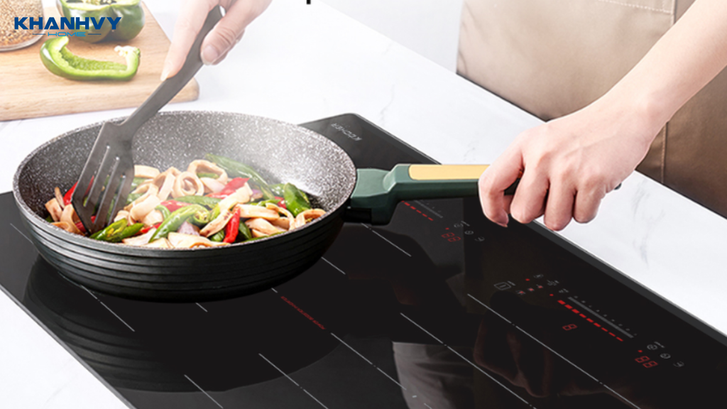 Sử dụng đúng loại nồi nấu: Nồi/chảo có đáy phẳng, bằng kim loại nhiễm từ để bếp nhận diện và hoạt động tối ưu.