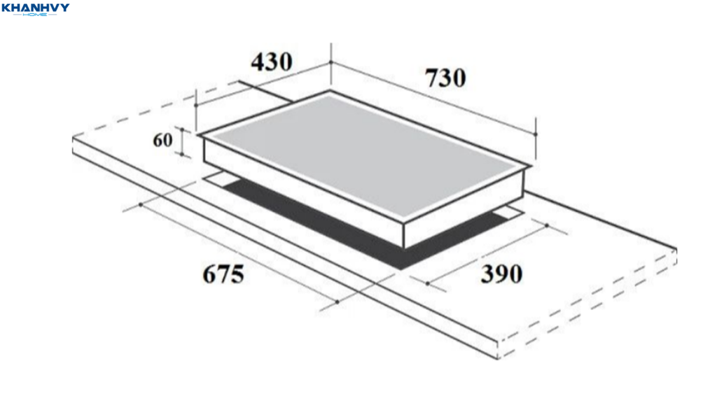 Không gian bên dưới hộc tủ phải thoáng khí để quạt tản nhiệt của bếp hoạt động hiệu quả. Tránh bịt kín hoặc để các vật dụng khác cản trở luồng khí.