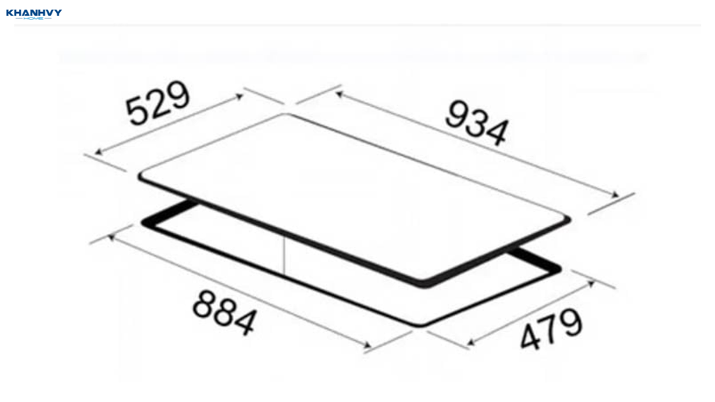 Kích thước khoét đá tiêu chuẩn: 884 x 479mm.