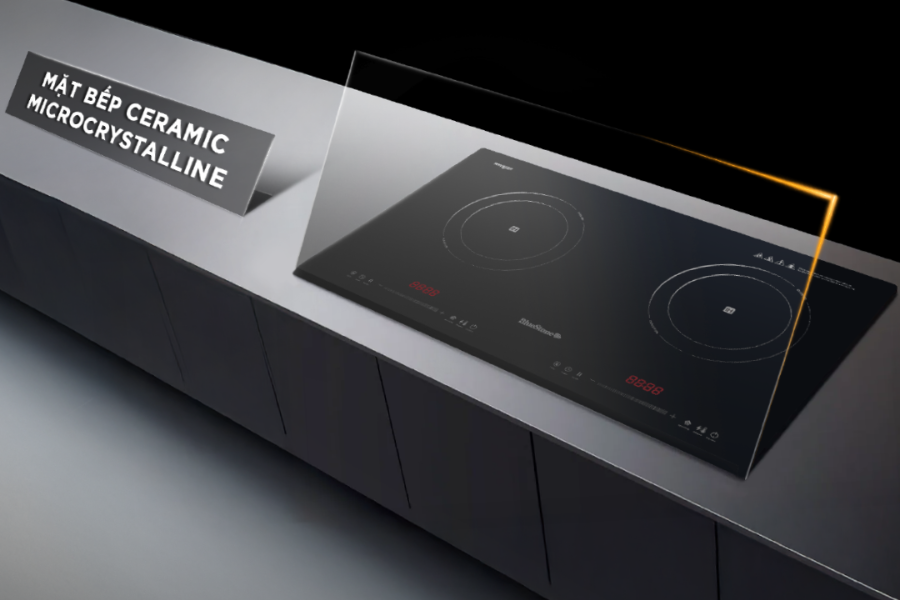 Sản phẩm sử dụng mặt kính Ceramic Microcrystalline cao cấp, nổi bật với khả năng chịu nhiệt, chịu lực cực tốt và chống trầy xước vượt trội. Bề mặt kính sáng bóng, dễ lau chùi, không chỉ đảm bảo tính an toàn trong quá trình sử dụng mà còn mang lại vẻ ngoài hiện đại, sang trọng cho không gian bếp.