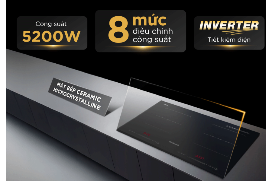 Bếp ứng dụng công nghệ Inverter tiên tiến, không chỉ giúp bếp hoạt động ổn định mà còn giảm đáng kể lượng điện năng tiêu thụ. Nhờ khả năng duy trì công suất đều đặn, bếp hạn chế hao phí điện, đồng thời giúp món ăn được nấu chín đều, giữ trọn hương vị tự nhiên. Đây là lựa chọn lý tưởng cho gia đình chú trọng đến tiết kiệm chi phí sinh hoạt và bảo vệ môi trường.