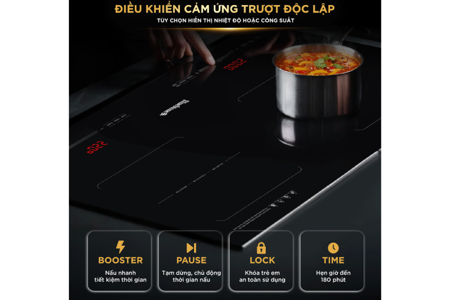 Bảng điều khiển | Cảm ứng trượt độc lập cho mỗi vùng nấu |