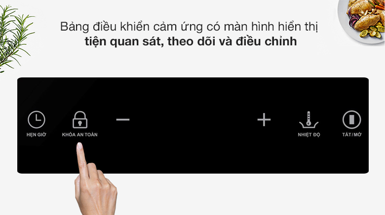 Bảng điều khiển cảm ứng có màn hình hiển thị tiện quan sát, theo dõi và điều chỉnh theo từng công thức nấu