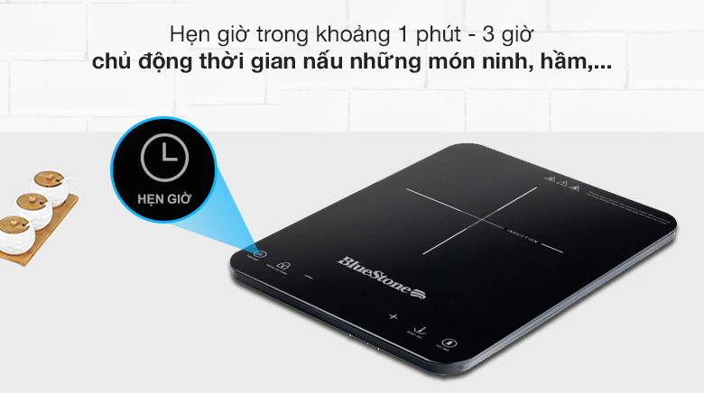 Bếp từ đơn có chức năng hẹn giờ trong khoảng 1 phút - 3 giờ, chủ động thời gian nấu những món ninh, hầm,... mà không phải canh chừng