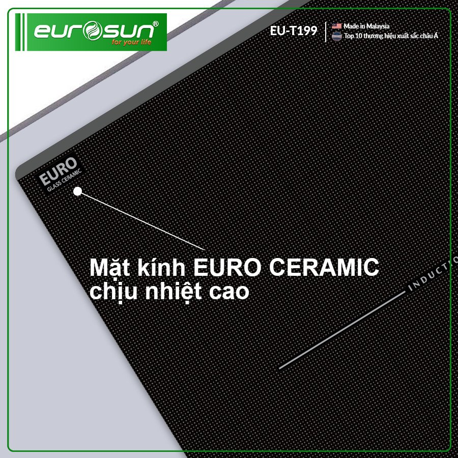 Eurosun EU-T199Max có chức năng chống trào nước Water overflow, cảm ứng tắt bếp khi trào nước. Khi có nước sôi vô tình tràn trong khi nấu, nước tràn đến khu vực bàn phím điều khiển, sau khoảng 3-5 giây bếp sẽ tự động ngừng hoạt động để đảm bảo an toàn. Các mẹ đun hầm yên tâm nhé.