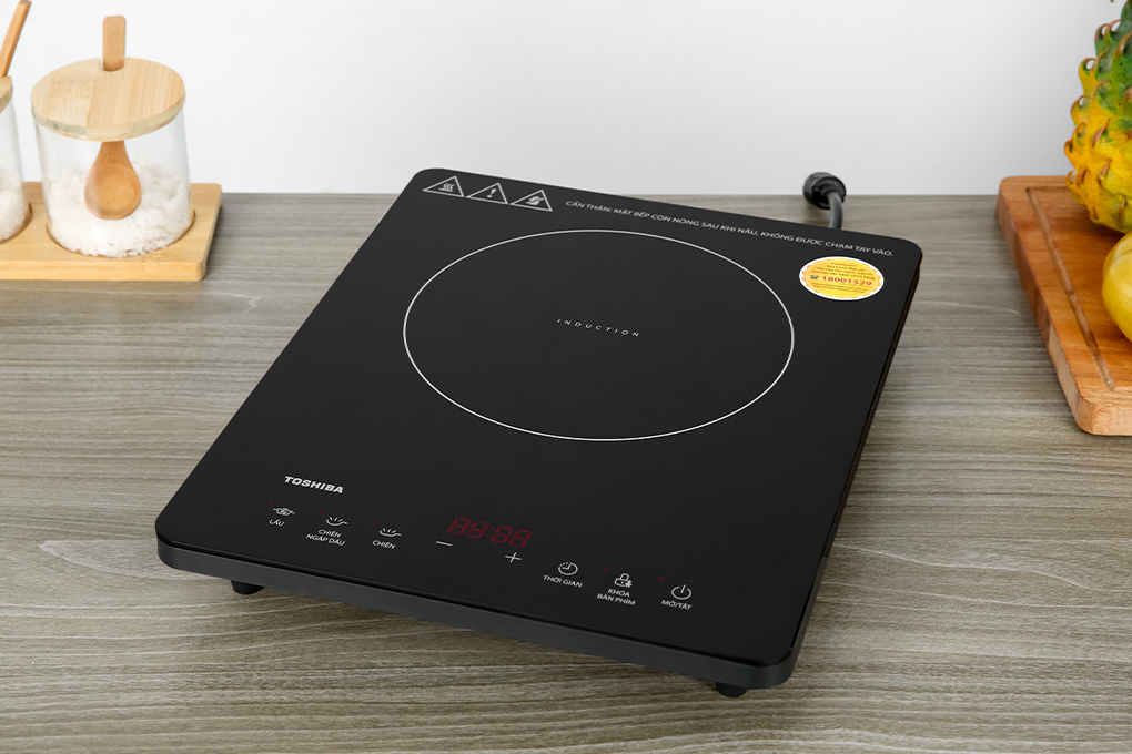 - Bếp từ Toshiba này có công suất 2000W, được chia thành 9 mức (120W/300W/500W/800W/1200W/1400W/1600W/1800W/2000W), giúp nấu chín thức ăn nhanh chóng, tiết kiệm thời gian.