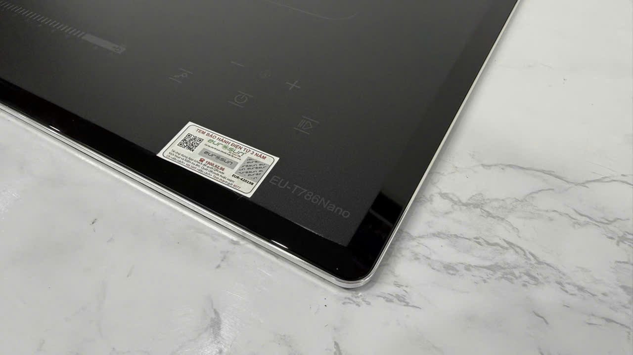 Bếp từ EU-T786Nano bề mặt phủ NANO chống xước, chống bám vân tay tuyệt đối. Đây là loại mặt kính tốt nhất hiện nay trên thị trường được nhiều hãng bếp nổi tiếng trên thế giới sử dụng. Ưu điểm của loại mặt kính này là khả năng chịu lực, chịu nhiệt và sốc nhiệt cực tốt. Mặt kính được mài vát và bo góc tỉ mỉ với một viền hợp kim nhôm cao cấp bao quanh giúp bảo vệ mặt kính và tăng tính thẩm mĩ.