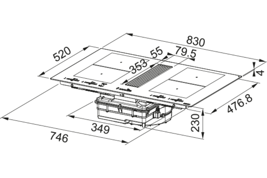 Loại bếp | Bếp từ 4 vùng nấu kết hợp hút mùi |