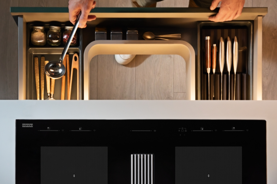 Điểm nổi bật của Franke 340.0705.335 là hệ thống hút mùi tích hợp ngay trên bếp, giúp hút khói, mùi và hơi nước trực tiếp tại vị trí nấu. Nhờ đó, mùi thức ăn không lan tỏa ra không gian xung quanh, giữ cho căn bếp luôn trong lành và dễ chịu trong suốt quá trình nấu nướng.