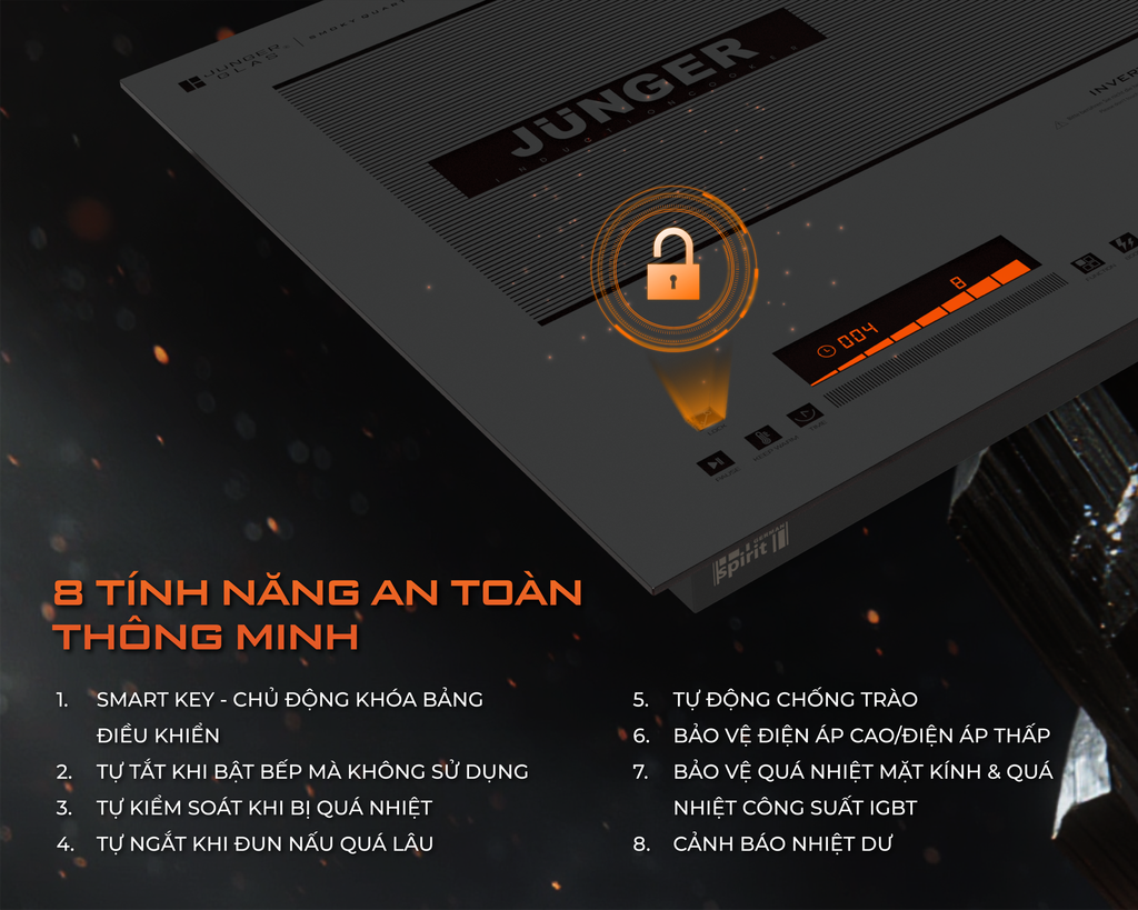 Giống như mặt kính Iphone, mặt kính bếp từ cũng có chi phí thay thế khi hỏng, nứt vỡ cực kỳ đắt đỏ. Junger Glas là thương hiệu đầu tiên lựa chọn cam kết bảo hành 10 năm cho chính phần cốt lõi này để người dùng không phải đánh đổi niềm tin bằng rủi ro hỏng hóc hay phát sinh sửa chữa.