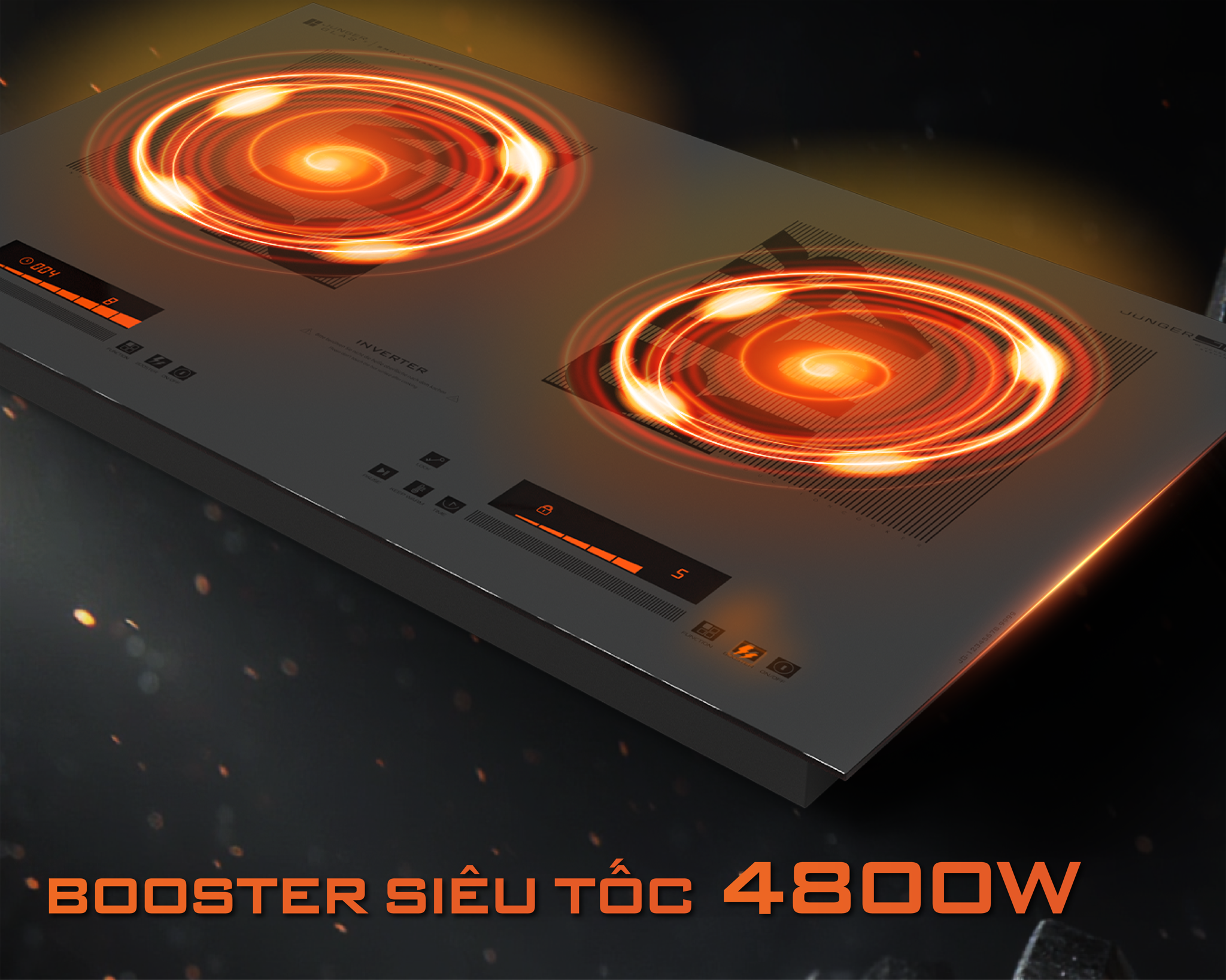 Khác biệt hoàn toàn so với các bếp từ thông thường, Junger JG CEJ-226-INVERTER sở hữu hai Booster độc lập hoạt động đồng thờ với tổng công suất đến 4800W – một lợi thế rõ rệt cho những gia đình nấu nướng thường xuyên, cần tốc độ và sự chủ động tuyệt đối trong từng bữa ăn.