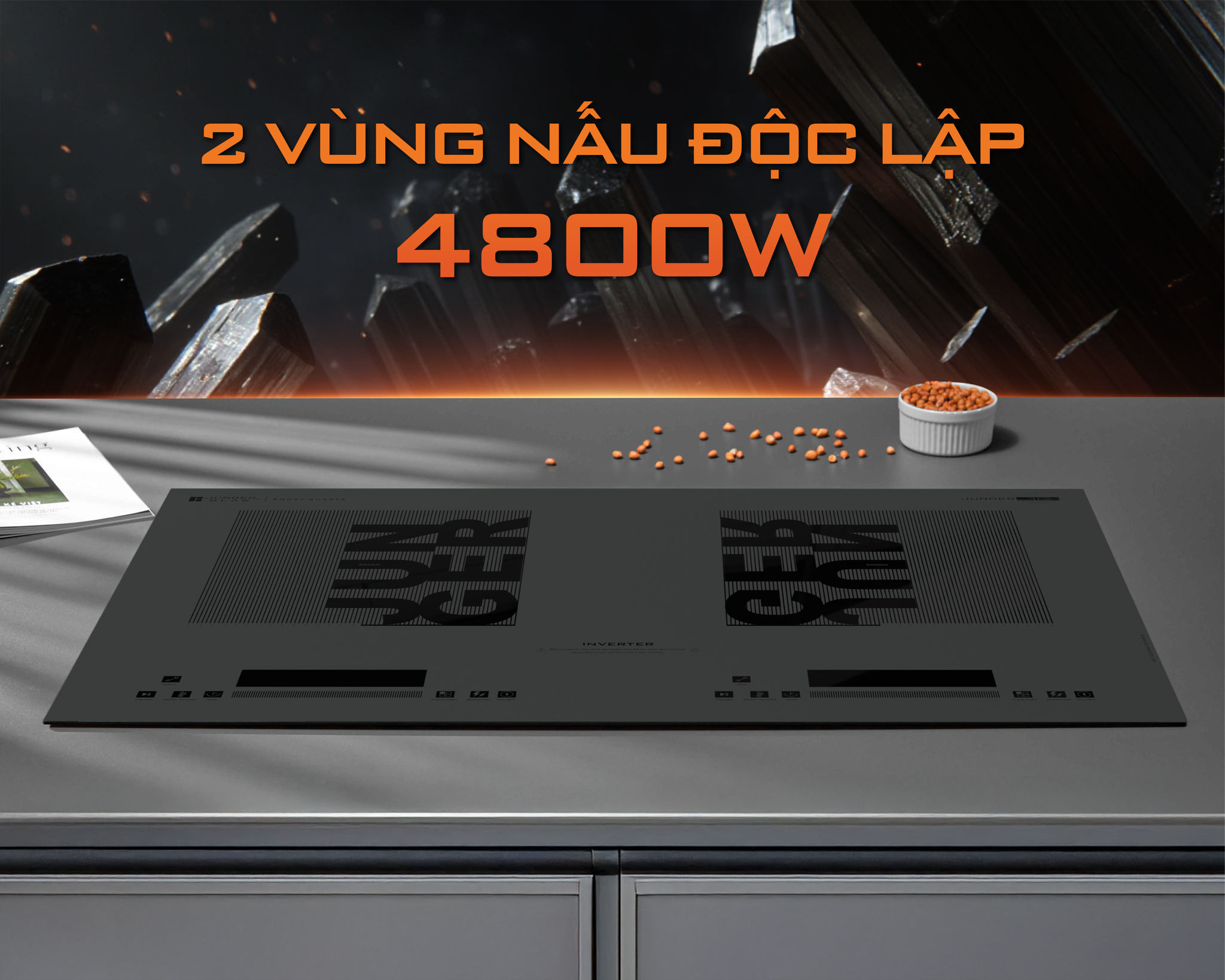 Công suất 4800W vượt trội, Booster đồng thời hai vùng nấu