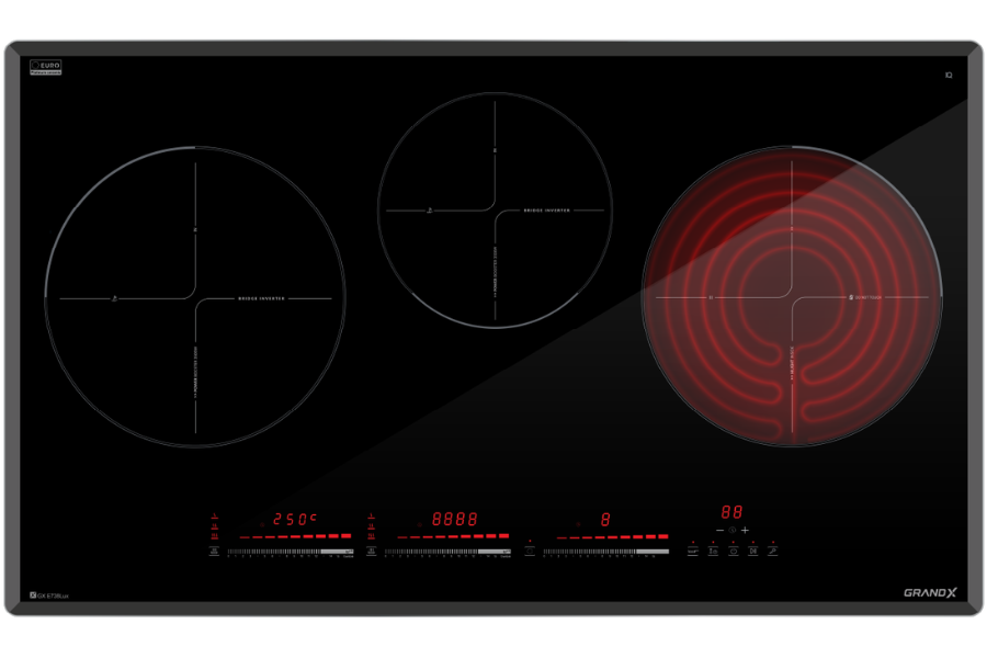 Bếp điện từ kết hợp hồng ngoại GX E738LUX là dòng sản phẩm cao cấp nổi bật với thiết kế sang trọng, tinh tế và khả năng đáp ứng linh hoạt mọi nhu cầu nấu nướng. Sở hữu cấu hình 3 vùng nấu độc lập, gồm 2 vùng từ và 1 vùng hồng ngoại, mẫu bếp này mang đến trải nghiệm nấu ăn đa dạng, phù hợp cho cả gia đình nhỏ đến những căn bếp cần hiệu suất cao.