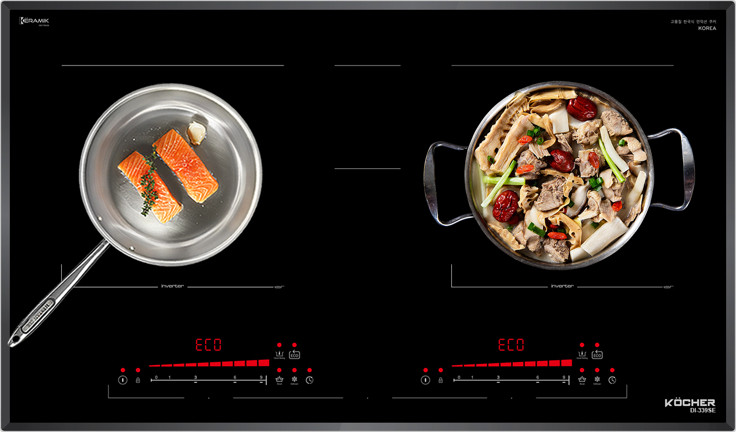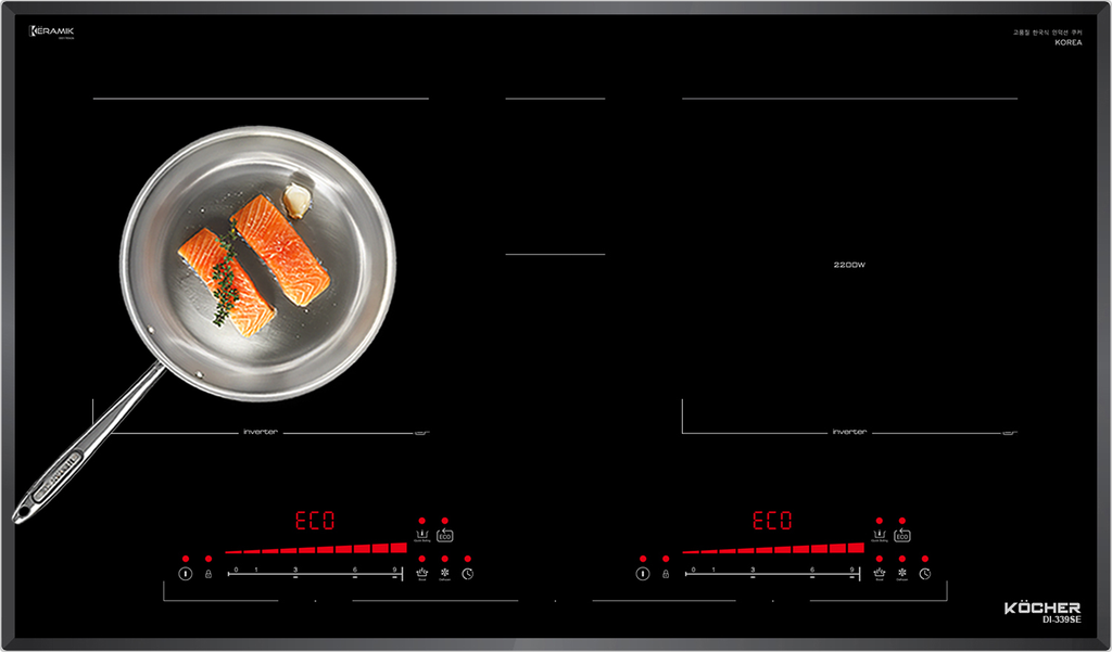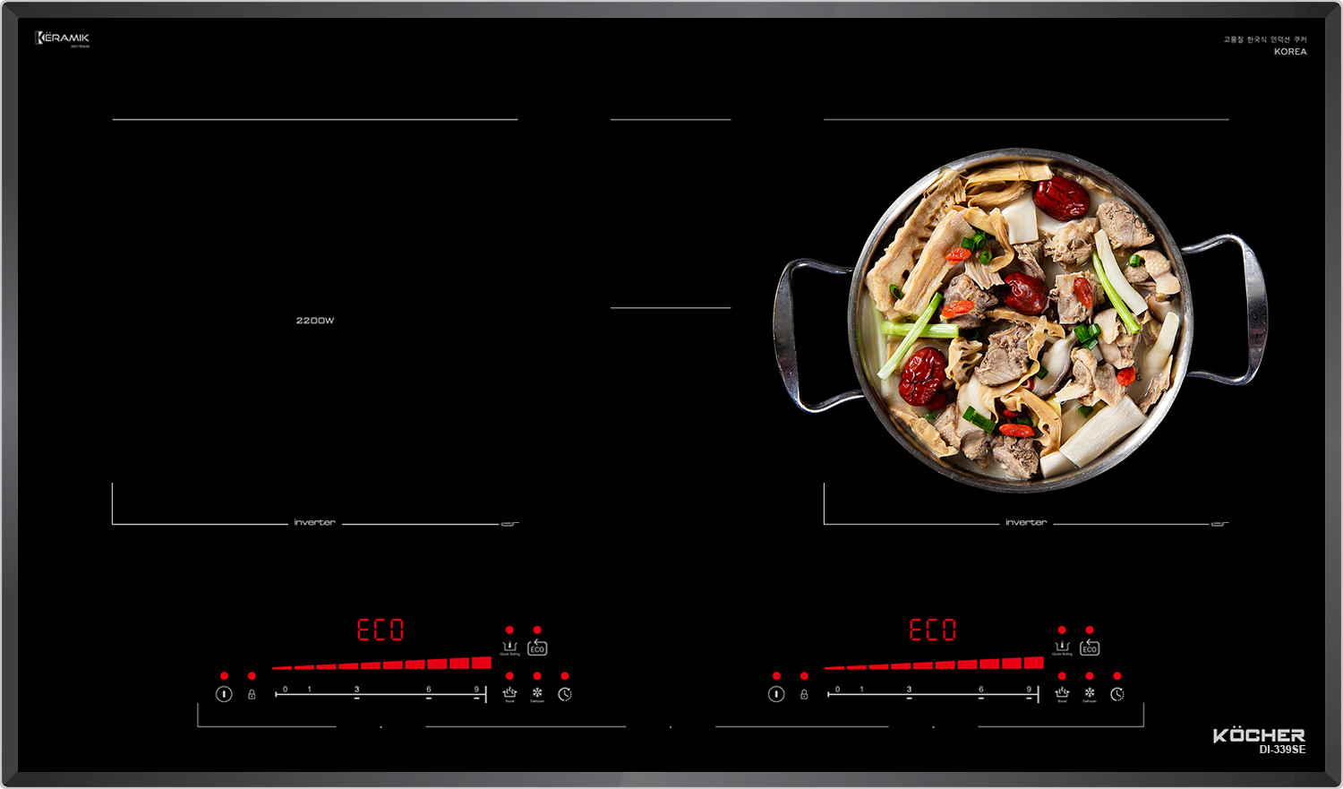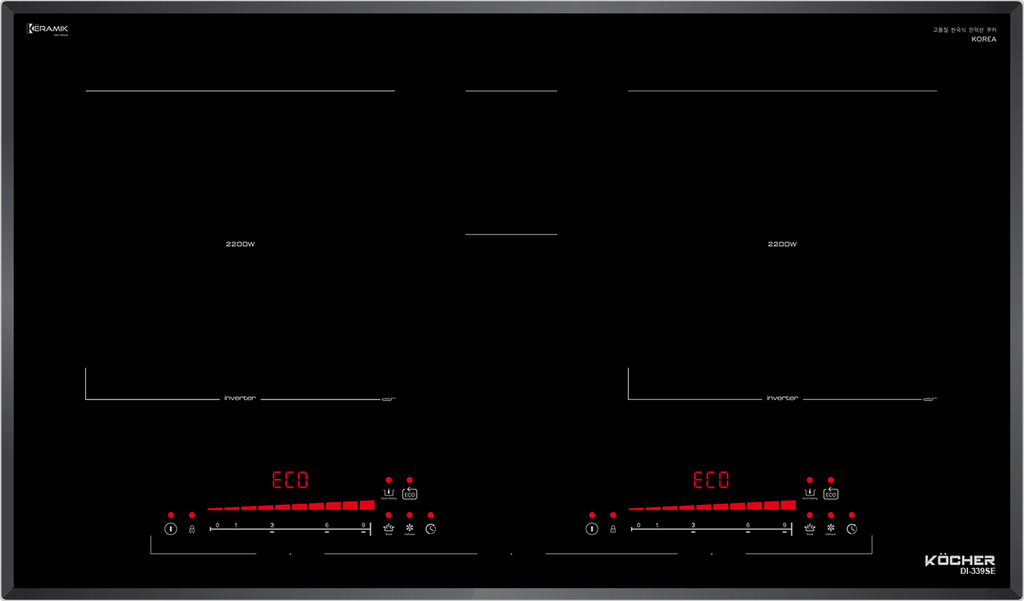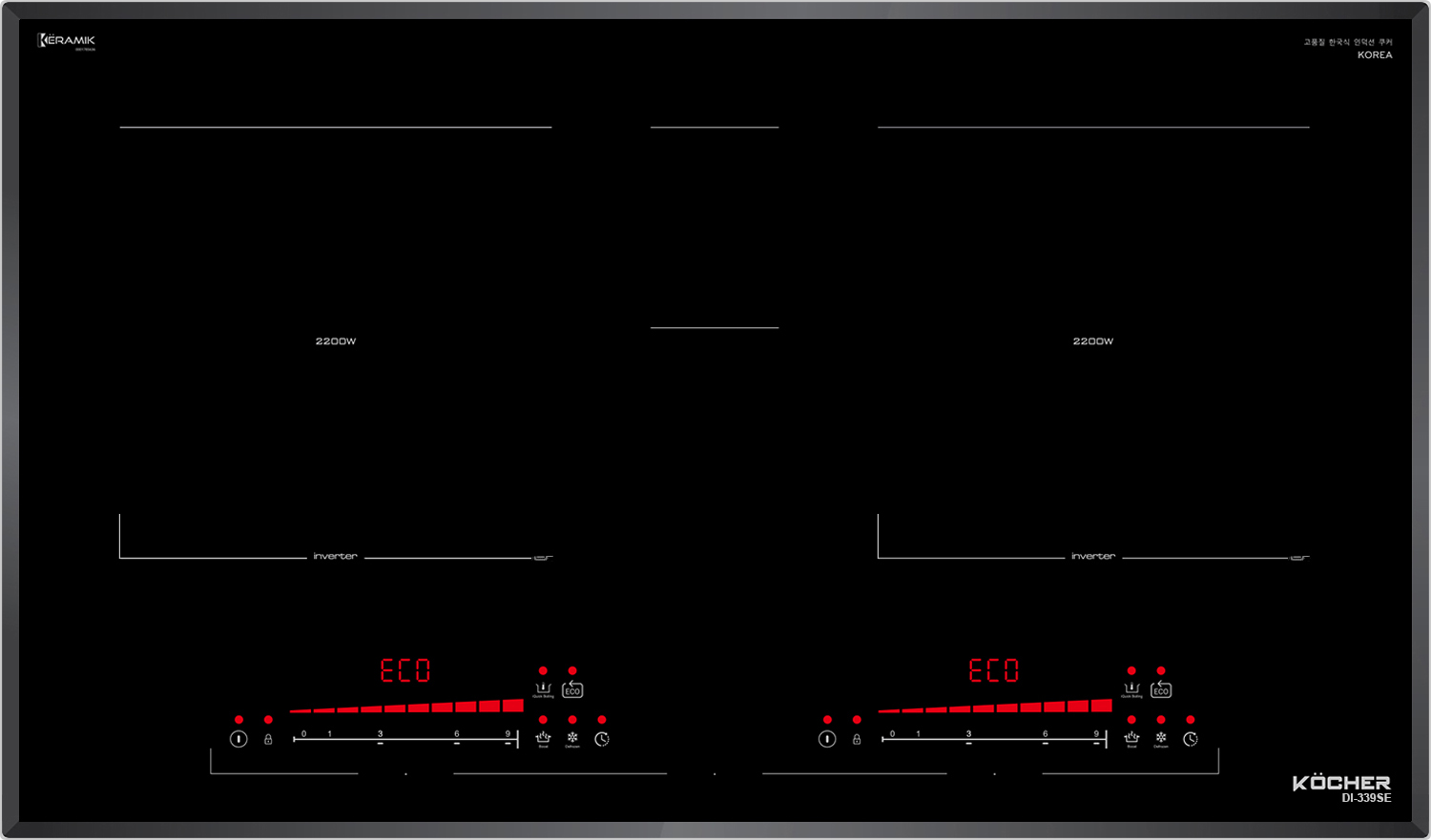 Bếp từ Kocher DI-339SE là một trong những bếp từ đôi ĐẦU TIÊN trên thị trường Việt Nam tích hợp công nghệ Inverter trên 2 vùng nấu. Bếp được trang bị 2 vùng nấu điều khiển độc lập công suất không san tải.