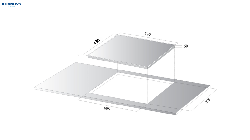 Kích thước lắp đặt của bếp từ 2 vùng nấu Kocher DI-633