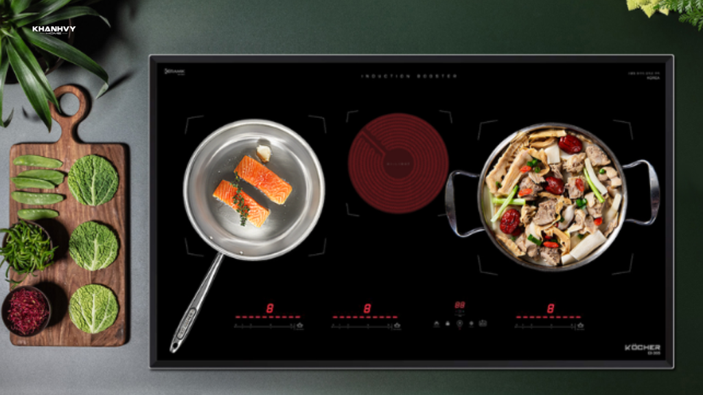 Bếp từ hỗn hợp tiện lợi: Kocher EI-355 là dòng bếp từ kết hợp hồng ngoại tiên tiến, cho phép người dùng tùy chọn vùng nấu linh hoạt phù hợp với từng loại nồi, chảo hoặc món ăn. Vùng bếp từ giúp nấu chín nhanh, tiết kiệm điện, trong khi vùng hồng ngoại dễ dàng nấu được với mọi chất liệu nồi, mang lại sự tiện lợi tối đa trong quá trình sử dụng.