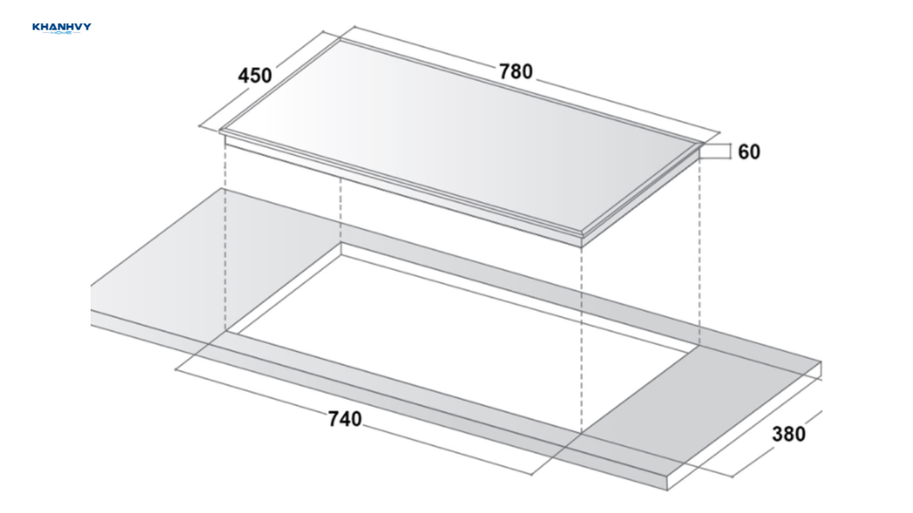 Xác định vị trí đặt bếp mong muốn, đảm bảo vị trí này đủ với kích thước của bếp 780 x 450 x 60 mm. Vị trí này nên gần nguồn điện để thuận tiện lắp đặt và sử dụng.