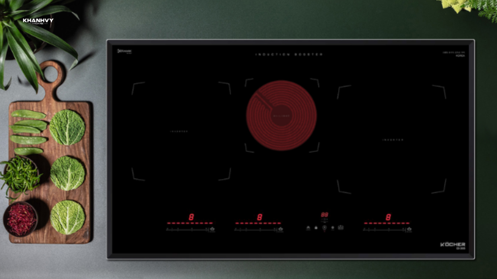 Bên cạnh đó, bếp có thiết kế kính đen cao cấp kết hợp với bảng điều khiển cảm ứng thông minh, giúp thao tác điều chỉnh công suất nhạy và chính xác hơn. Thiết kế tinh tế, tối giản nhưng đẳng cấp của Bếp từ Kocher EI-355 không chỉ mang lại tiện ích trong việc nấu nướng mà còn tôn lên vẻ sang trọng, hiện đại cho không gian nhà bếp của gia đình.