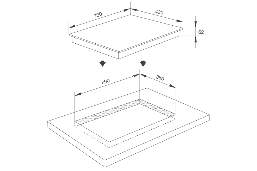 Kích thước cắt đá | Ngang 69 cm - Dọc 38 cm |