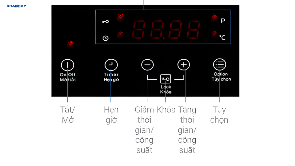 Khóa an toàn (Child Lock): Khi kích hoạt chức năng khóa an toàn, bảng điều khiển bếp sẽ bị vô hiệu hóa, giúp ngăn ngừa trẻ em vô tình chạm vào làm thay đổi cài đặt hoặc gây nguy hiểm trong quá trình sử dụng.